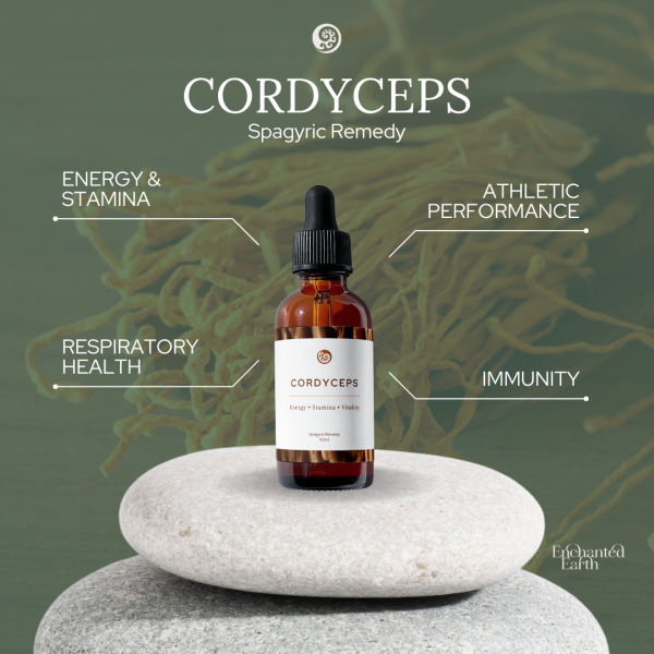 A potent, full-spectrum 1:2.5 ratio remedy crafted using traditional alchemical Spagyric methods for maximum bioavailability. Made with ethically sourced Cordyceps (Cordyceps militaris).