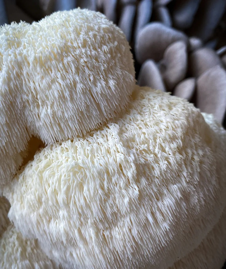 fresh, delicate, beautiful lion's mane (hericium erinaceus) expertly grown and harvested by us at our tiny farm. lion's mane is coveted for it's delicious lobster/crab-like taste and it's neuro-regenerative and anti-inflammatory properties. we ship our fresh lion's mane using a tracked next day service, and to guarantee freshness, please allow 1-4 business days for dispatch, so that we can ship product picked the same day. we ship monday-thursday, so deliveries arrive between tuesday and friday.