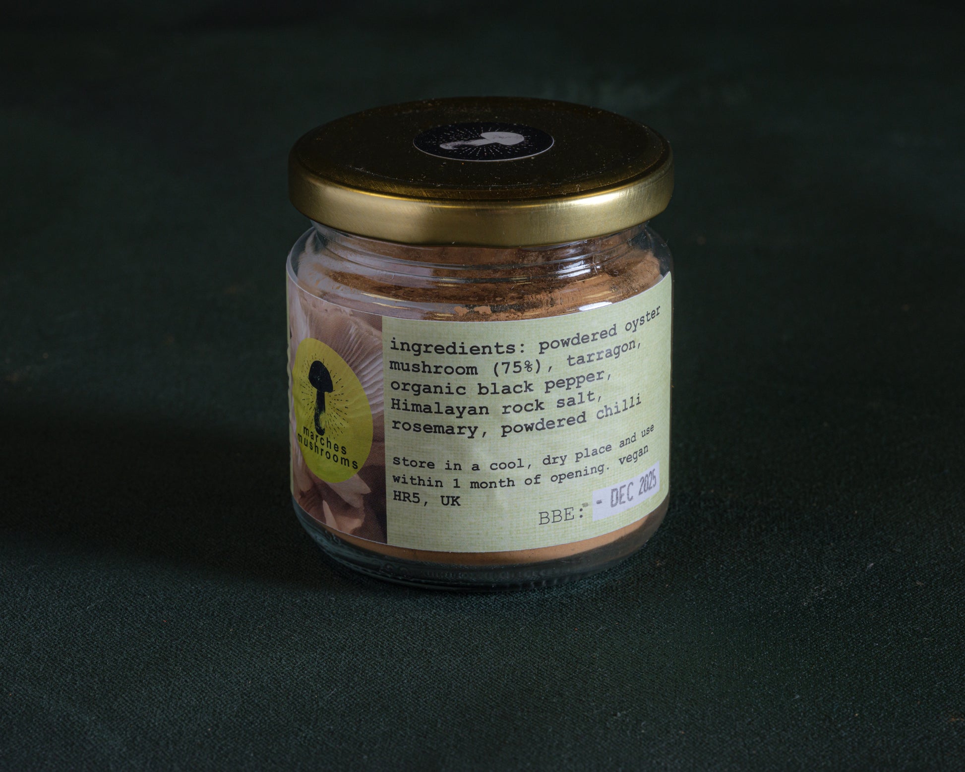 try our delicious oyster mushroom seasoning as a rub on meat/veg, as a sauce thickener or stock improver - it's also yummy sprinkled on salads, pasta or cheese-on-toast. 50g jar